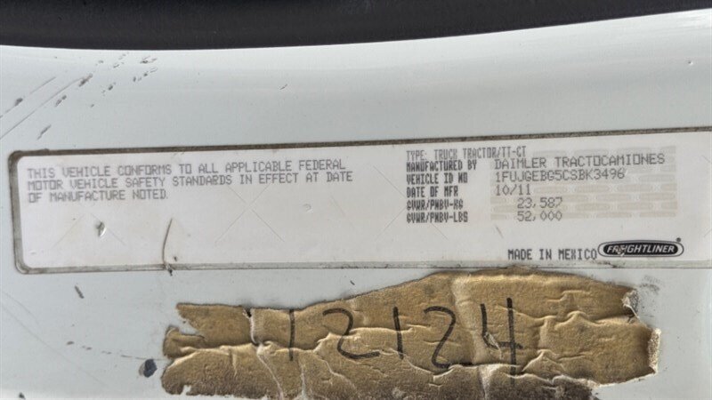 2012 Freightliner CASCADIA Semi-Trailer Truck Semi - Daycab Conventional