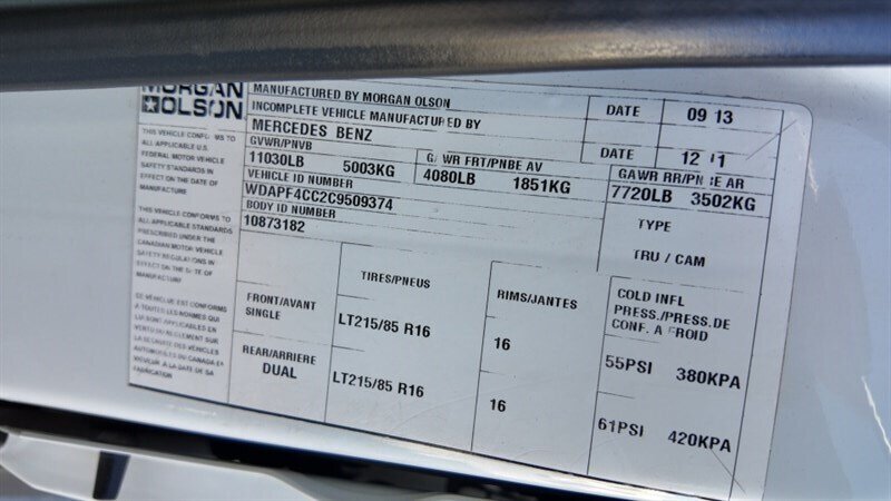 2012 Mercedes-Benz Sprinter 3500 Cab & Chassis 170" WB Cab & Chassis 2D Van - Box, Cube
